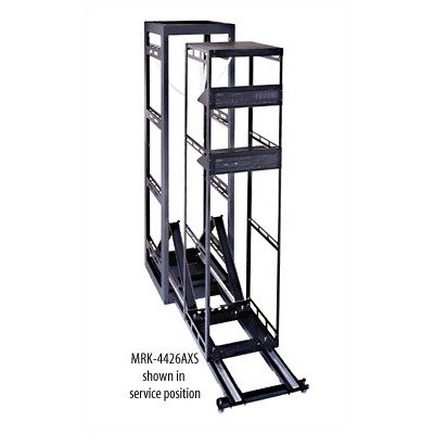 MRK-4426AXS Rack Spaces: 41U Spaces Features: -Available with 20'' and 26'' frame depths.-650 lb. weight capacity with proper weight distribution.-Rack frame heights range from 32 to 41 spaces, depending on the model.-Telescoping service stand elevates service tracks to bottom of AXS, allowing it to pull out.-Host enclosure can be pre-installed on-site while detachable rack frame is integrated with equipment off-site, simplifying installation.-Articulating cable carriers attach to rack frame for effective cable management.-AXS systems installed in MRK racks are Seismic Certified to the 1994 UBC Seismic Zone 4 lateral force requirements for protecting 500 lbs. of essential equipment in upper floor installations with an Ip value of 1.5 (order part # suffixed by ''Z4'').. Dimensions: -Racking Height: 71 3/4'' H.-Overall Dimensions: 83 1/8''H x 20''D.-Racking Height: 64 3/4'' H.-Overall Dimensions: 76 1/8''H x 20''D.-Racking Height: 59 1/2'' H.-Overall Dimensions: 70 7/8''H x 20''D.