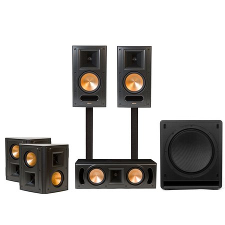 Pleasing to the eye and ear, the stylish and powerful RB-61 II home theater system exemplifies Reference II sound and leads to hours of listening pleasure. Responsible for impactful, realistic sound, this system always leaves you wanting more. (2) RB-61 II Bookshelf Speakers (1) RC-52 II Center Channel Speaker (2) RS-42 II Surround Speakers (1)Klipsch SW-310 Subwoofer..... Add two RS-41 II Speakers for a 7.1 home theater system Comprised of five speakers - left and right main speakers, a center channel speaker, left and right surround speakers and a sub-woofer for deep-reaching bass - the 5.1 Klipsch home theater system will envelop you in high-performance sound. By combining the Reference II speakers, listening experiences are transformed into unforgettable, powerful and emotional moments. Its sophisticated and elegant cabinetry complements surrounding d?cor. STANDS NOT INCLUDED