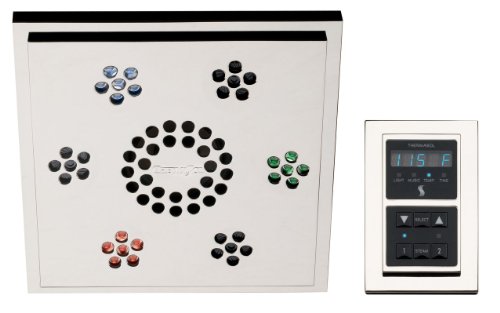 Modern Premium Light and Music SystemThe ThermaSol Premium Light & Music System gives you everything you need to create a truly relaxing atmosphere. This system can be installed anywhere in the bathroom or steam shower and utilizes eighteen ultra high intensity LED lights to provide you with a full spectrum of mood lighting and white light. Connect to an array of audio sources to complete your sanctuary. ThermaSol PLSM Features:Built-in FM receiver and two audio inputsConnect to CD, DVD, TV, satellite radio, MP3 or cableTime and temperature controlTwo preferred time and temperature memory settings18 ultra high intensity LED lightsMood Light mode generates a gradually changing color displayHigh performance speakers20 Data cable includedIncludes .5 oz tube of RTV silicone sealantMounting hardware