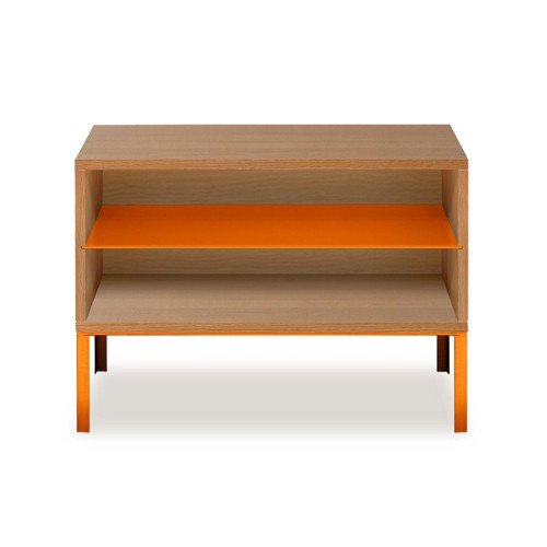 Design by Jonathan Coppin and Scott Dergance.Made in the U.S.A. by Elemental Living. The Veridis Media storage solutions combine two simple materials into a customizable space for modern home media and electronics. Solid wood boxes are spanned by powder coated aluminum shelves and assembled using honest detailing that is clean, versatile and stylish. Each unit sits atop 8" tall steel legs, which match your shelf color selection. The Media Unit 30 features a 20" depth which can accommodate audio/video equipment and other electronics. Linear slots at the rear allow for easy cable management and keep equipment and shelving nice and tidy. The solid wood box is offered in three beautiful wood finishes. Shelf and coordinating steel legs come in six powder coat finishes. Select Maple, Oak or Walnut for the box/frame. Then select from six powder coat colors for shelf and legs.