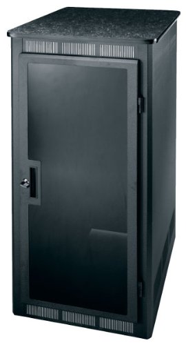 WRK-24MDK Features: -Graphite-speckled top that can accommodate large video monitors.-Skirted wheel-base.-Latching front plexi door.-Latching vented rear door. Dimensions: -42''(24 space) x 32'' deep presentation enclosure system.