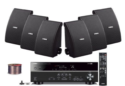Find recommendations and reviews Yamaha 3D-Ready 5.1-Channel 500 Watts Digital Home Theater Audio Video Receiver with 4K pass-through, HD Audio Decoding, CINEMA DSP, Adaptive Dynamic Range Control, 40-Station Preset Tuning, Sleep Timer, Compressed Music Enhancer & USB Digital Port to Control, Charge & Play Your iPod, iPhone or Memory Drive + Yamaha All Weather Outdoor Wall Mountable Natural Sound 180 watt 2-way Acoustic Suspension Speakers (Set of 6) Black + 100ft 16 Gauge Speaker Wire - Also Designed for Bookshelf Use. For both price and quality. To help you make the best product.